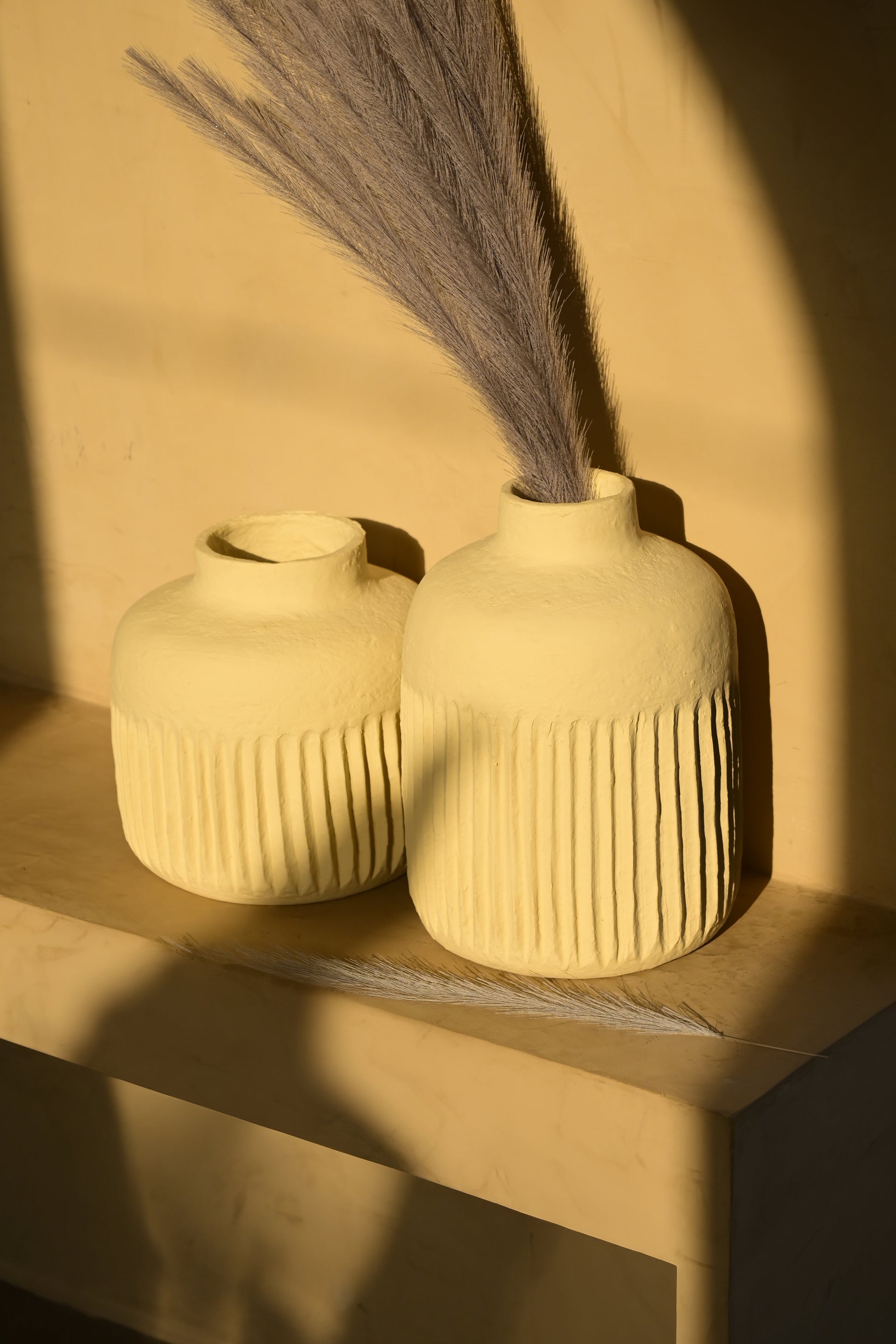 Each piece is handmade from organically engineered paper mache, carrying with it subtle variations in shape, size, texture, weight, color, and finish. These natural differences are a mark of the maker’s hand and add to the charm, giving every article its own character and story.